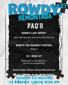 Please send your enquiries to rowdy.entertainment@outlook.comor DM us on instagram @rowdy.ent